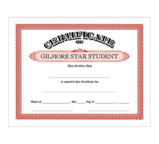 Our original, classic design is still our most popular. This traditional look on a true certificate-quality text-weight cotton bond paper is available in four border colors. The Custom Title lets you add your wording in the title bar. These 8.5" x 11" certificates are to be used horizontally. Shipped within 24 hours. Titles and colors can be combined for quantity discounts.