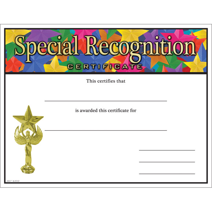 These striking certificates combine foil stamped titles and colorful graphics to create a special award. The 8.5" X 11" sheet is a slightly heavier, cover weight paper with a smooth finish. We'll combine your titles for quantity discounts. Items in stock ship within 24 hours. SAME DAY SHIPPING on stock orders placed before 3pm EST! JONES ORIGINAL