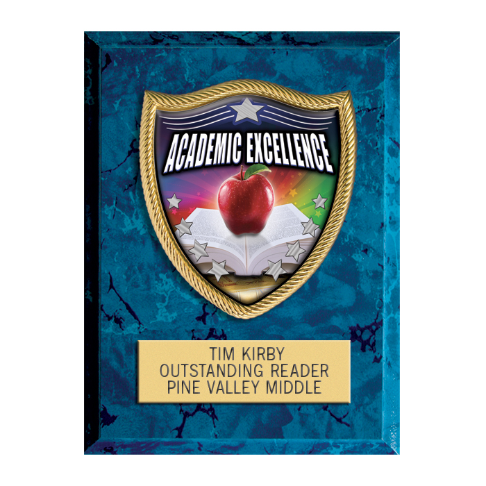 These plaques feature the bold inserts popularized in our Pop Trophy Series. Each insert is framed in an elegant braided gold shield holder. Plaque boards are 6" x 8". You get 3 free lines of engraving and fully assembled plaques in 3 business days. Order now and get a $.50 discount per item for entering engraving text online!