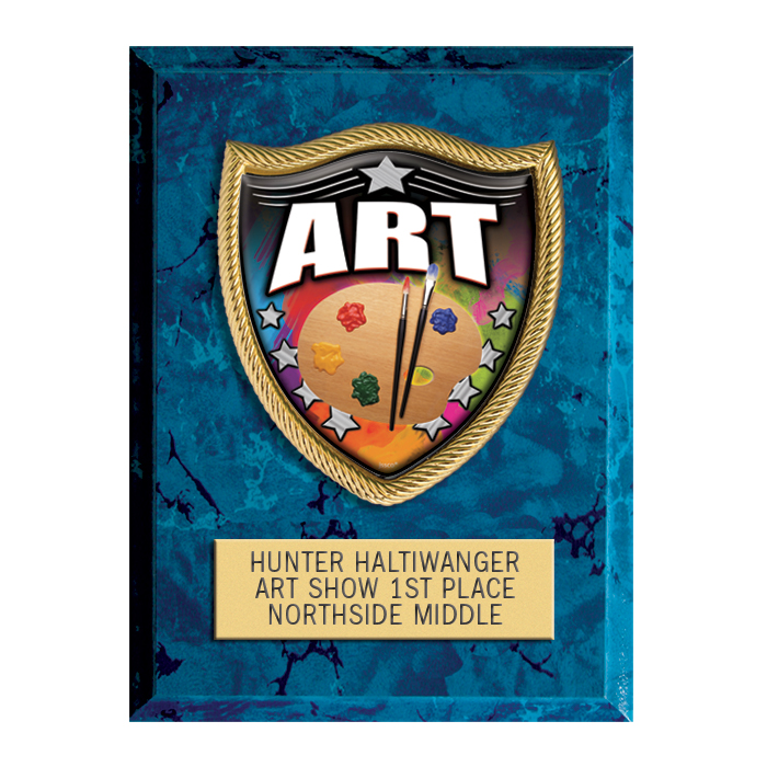 These plaques feature the bold inserts popularized in our Pop Trophy Series. Each insert is framed in an elegant braided gold shield holder. Plaque boards are 6" x 8". You get 3 free lines of engraving and fully assembled plaques in 3 business days. Order now and get a $.50 discount per item for entering engraving text online!