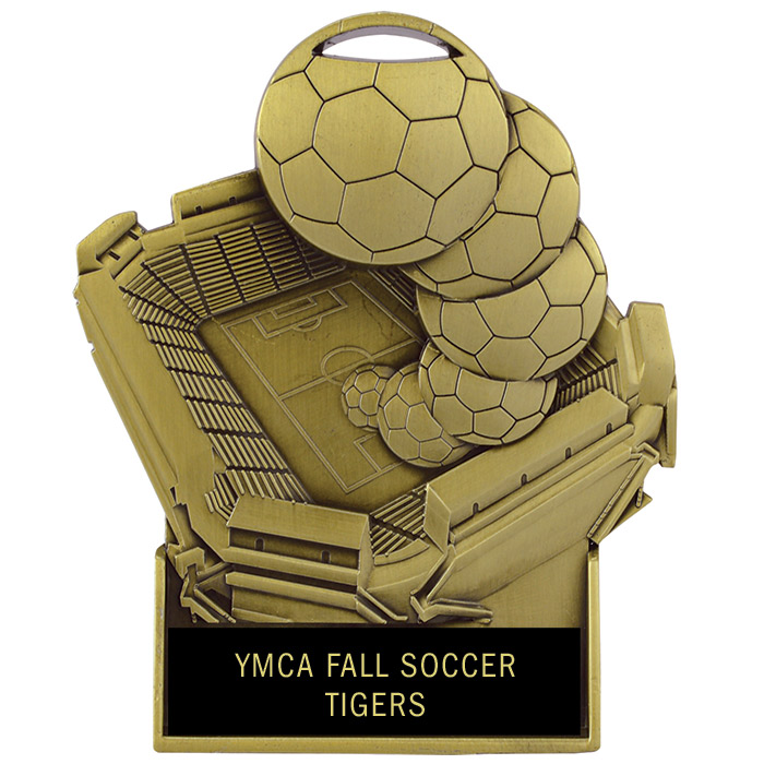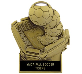 Present this award like a medal then display it like a trophy. This heavyweight award has a loop to attach a neck ribbon and a small base for displaying on flat surfaces. These 3" x 3.25" awards ship fully assembled in just three days. As always, engraving is included in the price. Order now and get a $.50 discount per item for entering engraving text online!