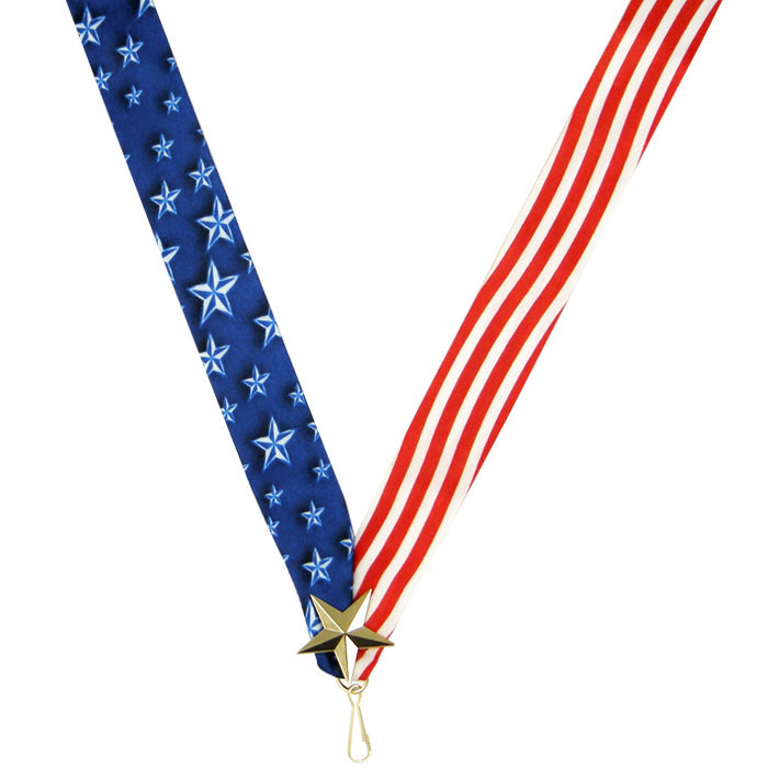 Deluxe Stars and Stripes with Star Emblem Premium Neck Ribbon