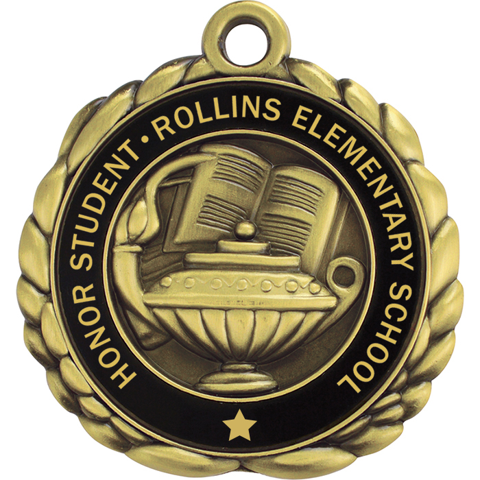 Add your wording to this elegant medal. These 2.5" medals are designed to accommodate a laser engraved plate on the front. Looks perfect with our No. 5003 Neck Ribbon. Free engraving, maximum 50 characters total. Shipped fully assembled within 3 days after receipt of order. Allow additional time for shipping.