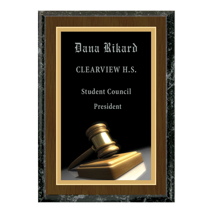 Here is your opportunity to have your engraved wording inscribed on a stunning full color plaque. Each beautiful plate is mounted on a 5" x 7" black marble finished plaque board. Pick one - or many - of the 11 styles available, and we'll combine for quantity discounts. Plate accommodates 4 lines of text. Board features slots for hanging. Ships fully assembled in 3 days. Order now and get a $.50 discount per item for entering engraving text online!