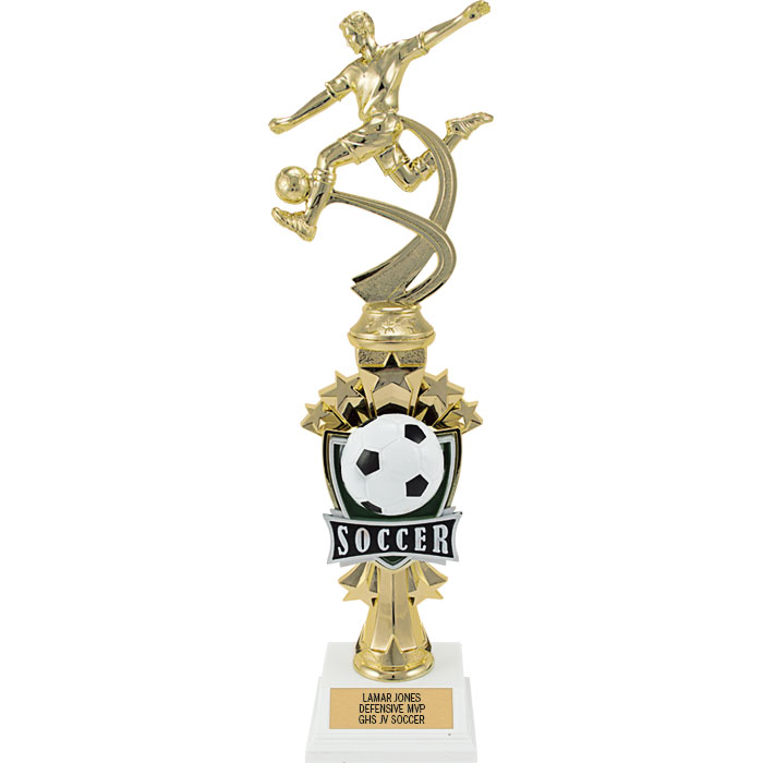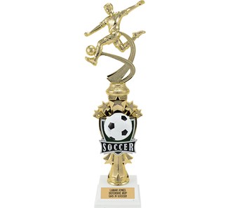 Recognize their athletic achievements with these towering 14.5” x 3.5” trophies. This trophy line features a sports themed figure on top of a sleek, modern riser. The color inset really gives this line a “wow” factor. Engraving is included in the price of your trophy. Order now and get a $.50 discount per item for entering engraving text online! Trophies ship in 3 business days.