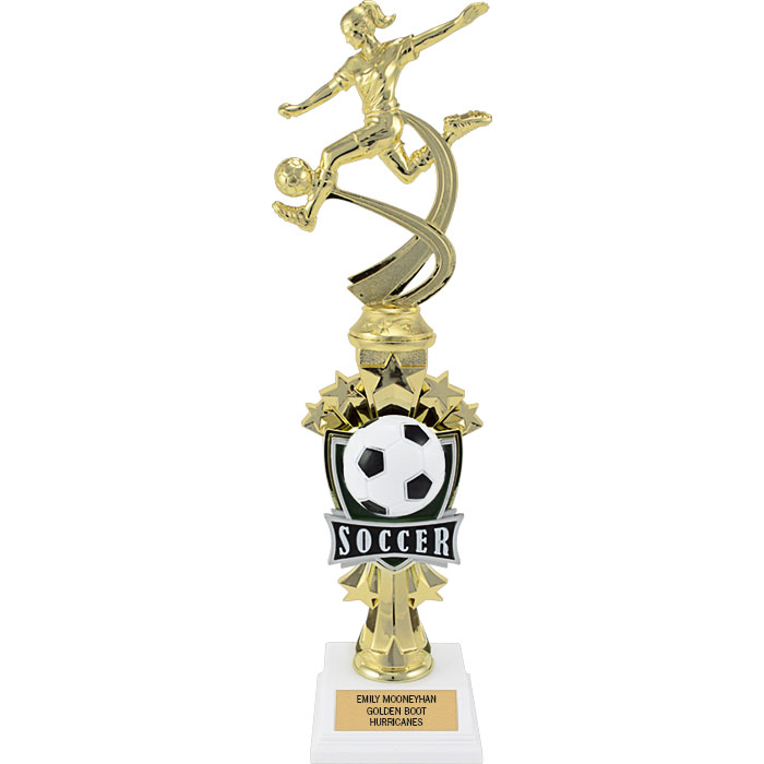 Recognize their athletic achievements with these towering 14.5” x 3.5” trophies. This trophy line features a sports themed figure on top of a sleek, modern riser. The color inset really gives this line a “wow” factor. Engraving is included in the price of your trophy. Order now and get a $.50 discount per item for entering engraving text online! Trophies ship in 3 business days.