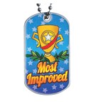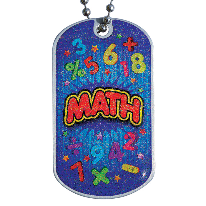 This award gives you both glitter and bold color. Our 2" x 1.125" aluminum Glitter Tagz ship with attached glitter, domed inserts. A 24" chain is included so that your students can wear their awards with pride. Combine titles for quantity discounts. Shipped fully assembled within 24 hours.