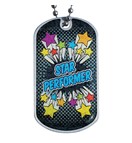 This award gives you both glitter and bold color. Our 2" x 1.125" aluminum Glitter Tagz ship with attached glitter, domed inserts. A 24" chain is included so that your students can wear their awards with pride. Combine titles for quantity discounts. Shipped fully assembled within 24 hours.