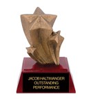 Celebrate your school spirit and thrill your recipients with these detailed mascot trophies. These beautiful awards feature fine detail on a substantial resin trophy. Engraved to your specification, these high definition trophies ship fully assembled in just three days. As always, engraving is included in the price. Please allow additional time for shipping. Order now and get a $.50 discount per item for entering engraving text online! Size: 3" x 4.25"