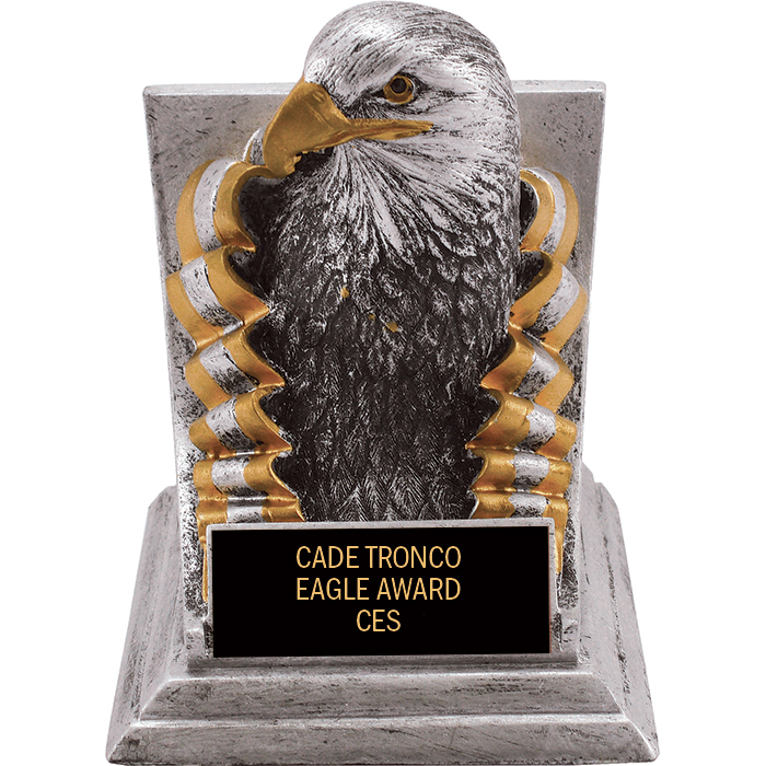 Celebrate your school spirit and thrill your recipients with these detailed mascot trophies. These beautiful awards feature fine detail on a substantial resin trophy. Engraved to your specification, these high definition trophies ship fully assembled in just three days. As always, engraving is included in the price. Please allow additional time for shipping. Order now and get a $.50 discount per item for entering engraving text online! Size: 3" x 4"