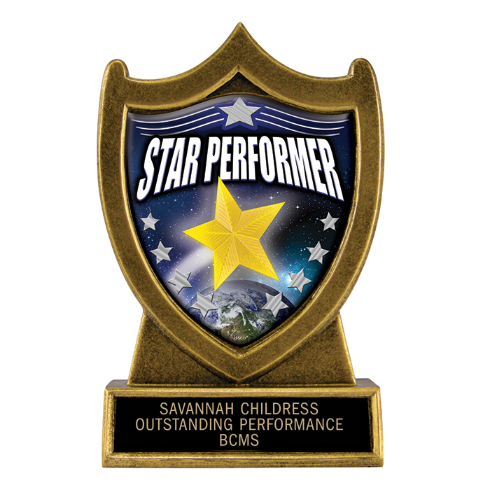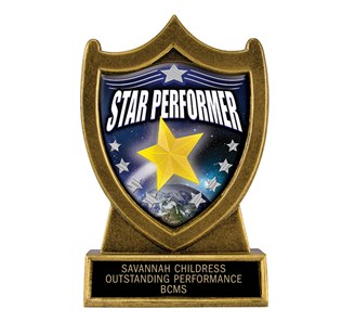 Bold color, durable resin and our most popular titles make this trophy line. These substantial trophies feature inset mylars with brilliantly colored graphics to illustrate your award. Each trophy is 4" x 5.5". You get 3 free lines of engraving and a fully assembled trophy in just 3 business days. Order now and get a $.50 discount per item for entering engraving text online!
