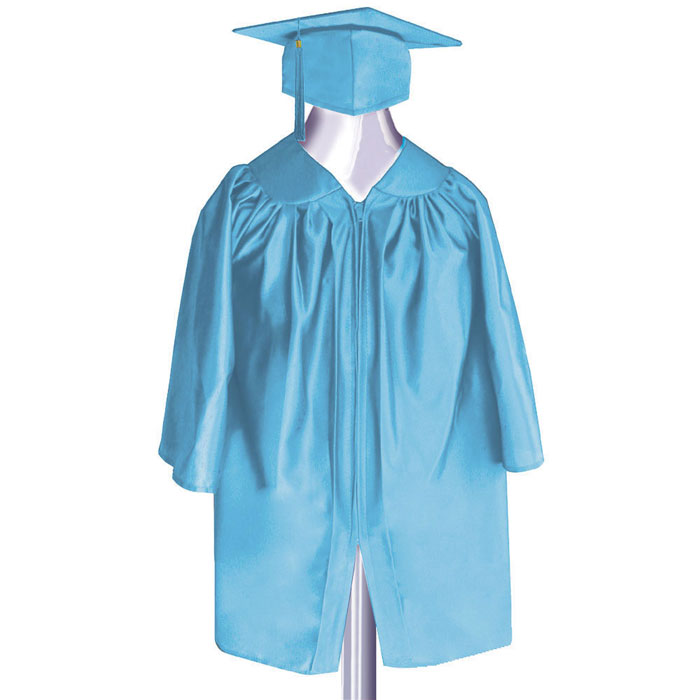 These sets are sized for Elementary, Kindergarten and Pre-K graduates. Gowns are cut 8" to 10" from the floor. They are pleated and full cut from wrinkle resistant polyester. Caps are one size fits all with an adjustable band in the back for a custom-like fit. Tall Gown fits children 4'3" to 4'5" tall. Each set includes one cap, one gown, and one tassel (color same as cap and gown). 100% Polyester. Minimum order of 10. Shipped within 7 days of receipt of order.