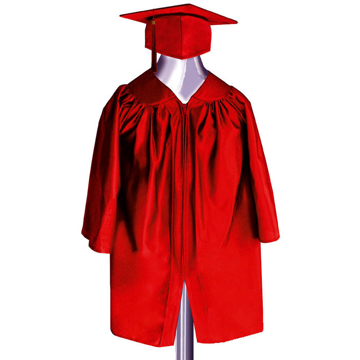 These sets are sized for Elementary, Kindergarten and Pre-K graduates. Gowns are cut 8" to 10" from the floor. They are pleated and full cut from wrinkle resistant polyester. Caps are one size fits all with an adjustable band in the back for a custom-like fit. Large Gown fits children 4' to 4'2" tall. Each set includes one cap, one gown, and one tassel (color same as cap and gown). 100% Polyester. Minimum order of 10. Shipped within 7 days of receipt of order.