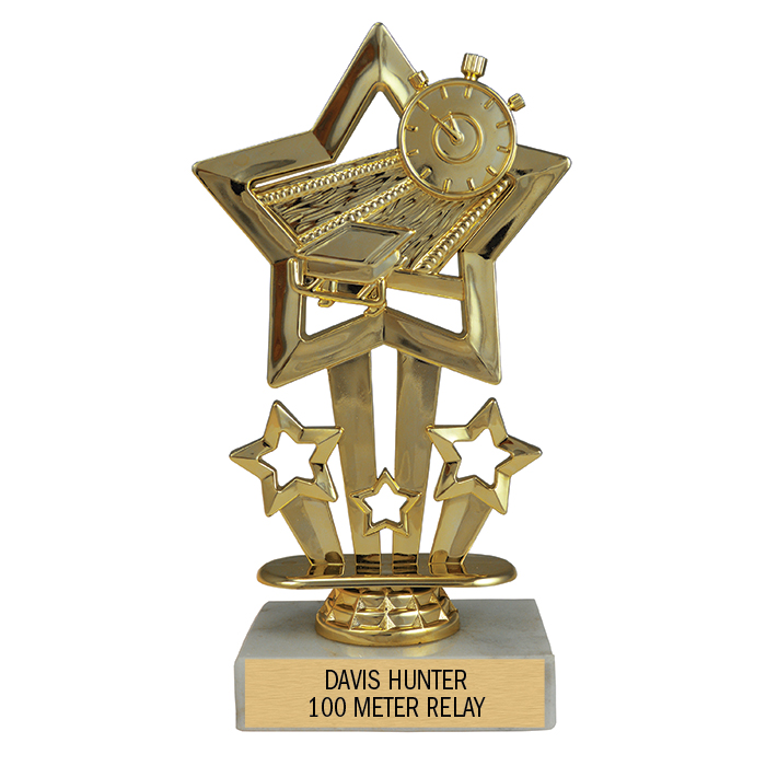 We have a trophy for every award occasion. Each features a detailed gold figure atop a real marble base. Better yet, two lines of engraving are included in the price. Order now and get a $.50 discount per item for entering engraving text online! These trophies ship fully assembled in just 3 days! Size: 3" x 6.75"