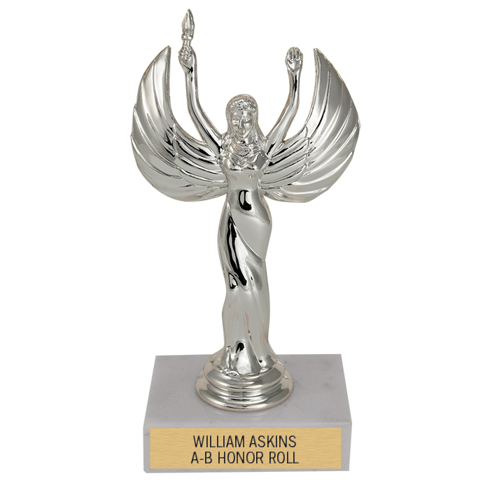 We have a trophy for every award occasion. Each features a detailed silver figure atop a real marble base. Better yet, two lines of engraving are included in the price. Order now and get a $.50 discount per item for entering engraving text online! These trophies ship fully assembled in just 3 days! Size: 3" x 6.25"