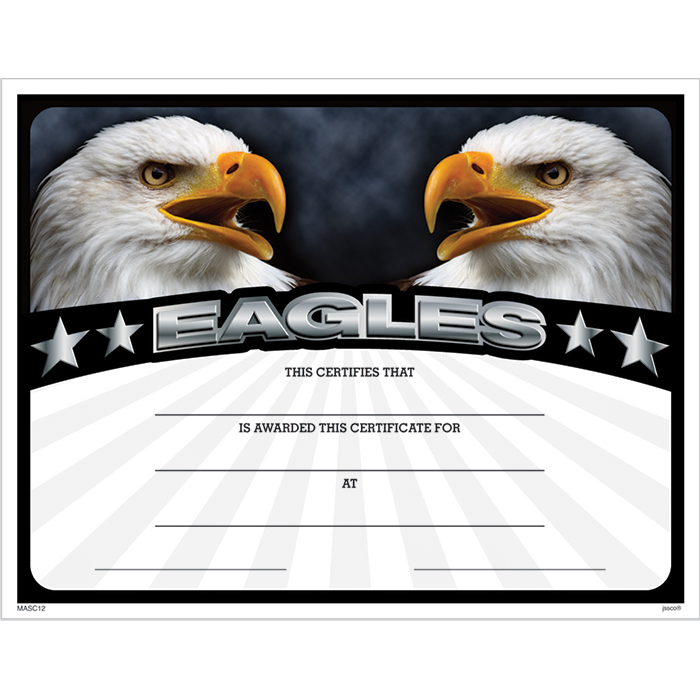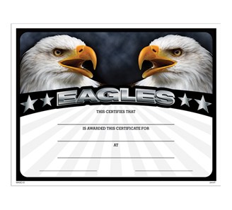 These Mascot Certificates feature stunning graphics that illustrate you school pride. Each certificate is a full 11" x 8.5" on white text weight paper. They perfectly over-print in laser and inkjet printers. This line ships within 24 hours. Combine your titles for discounts. SAME DAY SHIPPING on stock orders placed before 3pm EST!
