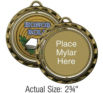 Versatile thanks to our enormous selection of mylars in academic, athletic, activity and other titles. The center of this heavy 2.75" cast medal rotates to show off two different mylars! Price includes the two 2" mylars, shipped unattached. Ships within 24 hours. Sorry, this item cannot be engraved.