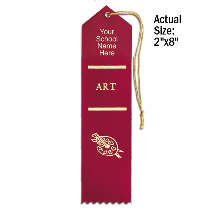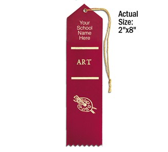 Personalize our premium stock ribbons with your school's name in gold foil. Use the standard ribbon color shown here or pick your color. Minimum order without $20.00 setup charge is 100. Ships within 5 business days. Quantity discount applies to total of Personalized Ribbons. Ribbons are 2" x 8".