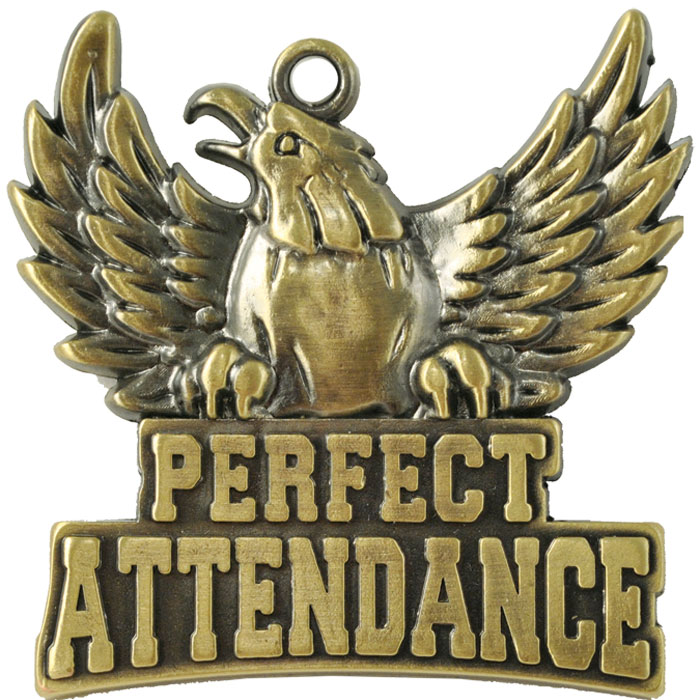Perfect Attendance Eagle Gold Medal - 2.125"