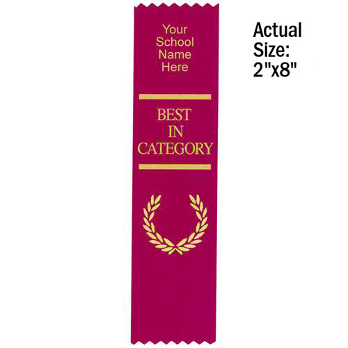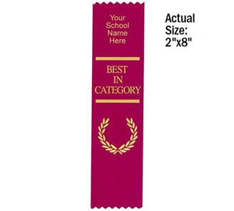 Personalize our premium stock ribbons with your school's name in gold foil. Use the standard ribbon color shown here or pick your color. Minimum order without $20.00 setup charge is 100. Ships within 5 business days. Quantity discount applies to total of Personalized Ribbons. Ribbons are 2" x 8".
