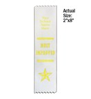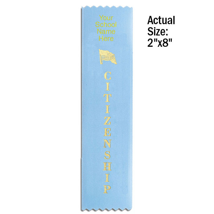 Personalize our premium stock ribbons with your school's name in gold foil. Use the standard ribbon color shown here or pick your color. Minimum order without $20.00 setup charge is 100. Ships within 5 business days. Quantity discount applies to total of Personalized Ribbons. Ribbons are 2" x 8".