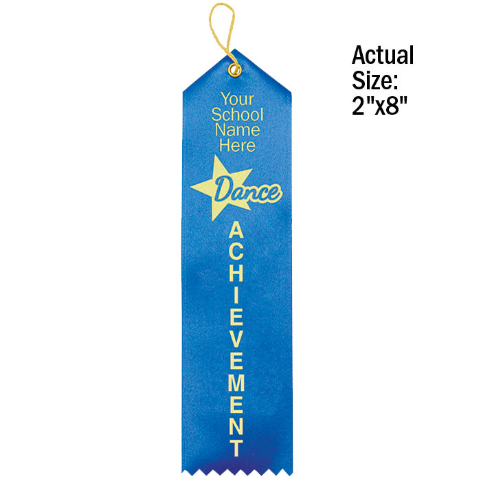 Personalize our premium stock ribbons with your school's name in gold foil. Use the standard ribbon color shown here or pick your color. Minimum order without $20.00 setup charge is 100. Ships within 5 business days. Quantity discount applies to total of Personalized Ribbons. Ribbons are 2" x 8".