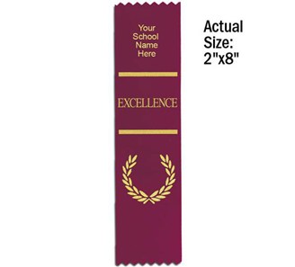 Personalize our premium stock ribbons with your school's name in gold foil. Use the standard ribbon color shown here or pick your color. Minimum order without $20.00 setup charge is 100. Ships within 5 business days. Quantity discount applies to total of Personalized Ribbons. Ribbons are 2" x 8".