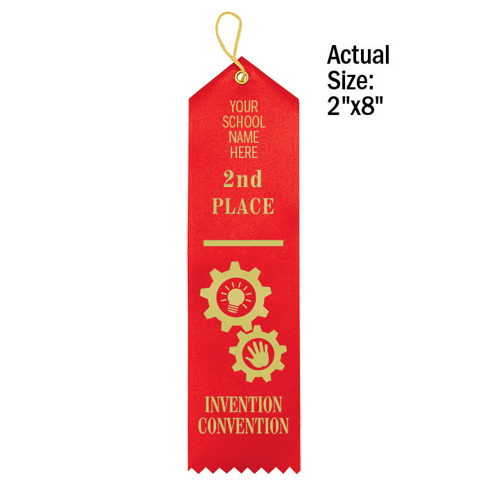 Personalize our premium stock ribbons with your school's name in gold foil. Use the standard ribbon color shown here or pick your color. Minimum order without $20.00 setup charge is 100. Ships within 5 business days. Quantity discount applies to total of Personalized Ribbons. Ribbons are 2" x 8".
