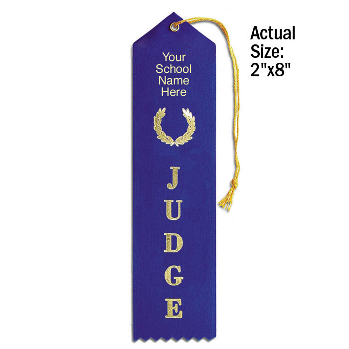 Personalize our premium stock ribbons with your school's name in gold foil. Use the standard ribbon color shown here or pick your color. Minimum order without $20.00 setup charge is 100. Ships within 5 business days. Quantity discount applies to total of Personalized Ribbons. Ribbons are 2" x 8".