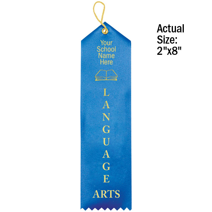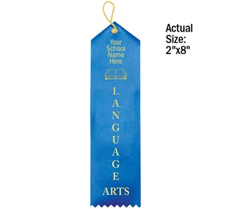 Personalize our premium stock ribbons with your school's name in gold foil. Use the standard ribbon color shown here or pick your color. Minimum order without $20.00 setup charge is 100. Ships within 5 business days. Quantity discount applies to total of Personalized Ribbons. Ribbons are 2" x 8".