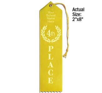 Personalize our premium stock ribbons with your school's name in gold foil. Use the standard ribbon color shown here or pick your color. Minimum order without $20.00 setup charge is 100. Ships within 5 business days. Quantity discount applies to total of Personalized Ribbons. Ribbons are 2" x 8".