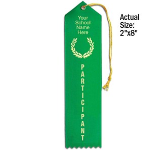 Personalize our premium stock ribbons with your school's name in gold foil. Use the standard ribbon color shown here or pick your color. Minimum order without $20.00 setup charge is 100. Ships within 5 business days. Quantity discount applies to total of Personalized Ribbons. Ribbons are 2" x 8".