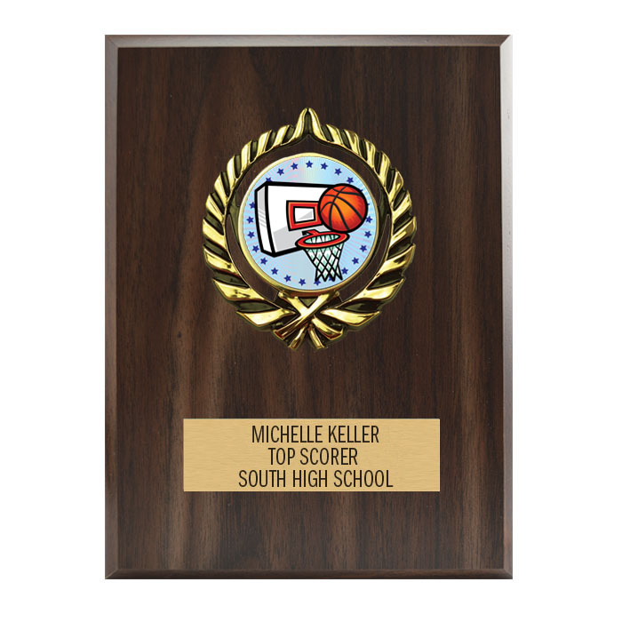 6x8 Basketball Walnut Finish Activity Plaque