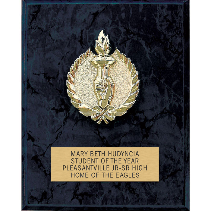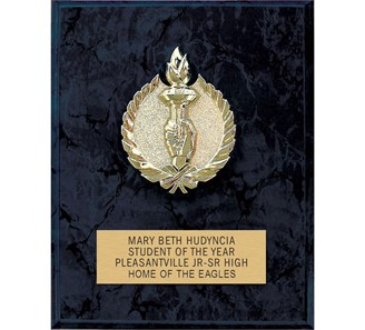 This ample 8" x 10" plaque includes your choice of engraved lettering on a gold plate and a plaque relief. Available in four finishes. Ships in 3 days. Order now and get a $.50 discount per item for entering engraving text online!