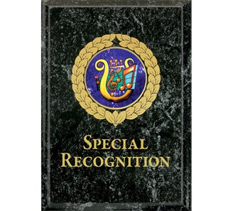 These quick, inexpensive plaques feature gold foil on marble finish and come with your choice of mylar. Ship within 24 hours! Allow additional time for shipping. Please provide quantity and item number and Mylar number.