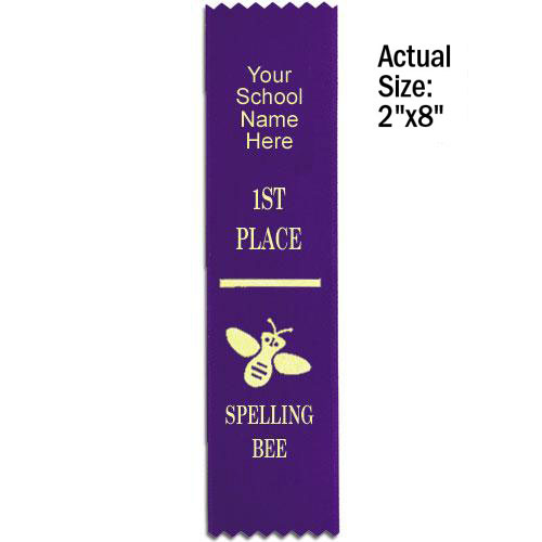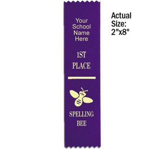 Personalize our premium stock ribbons with your school's name in gold foil. Use the standard ribbon color shown here or pick your color. Minimum order without $20.00 setup charge is 100. Ships within 5 business days. Quantity discount applies to total of Personalized Ribbons. Ribbons are 2" x 8".