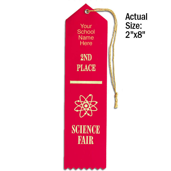 Personalize our premium stock ribbons with your school's name in gold foil. Use the standard ribbon color shown here or pick your color. Minimum order without $20.00 setup charge is 100. Ships within 5 business days. Quantity discount applies to total of Personalized Ribbons. Ribbons are 2" x 8".