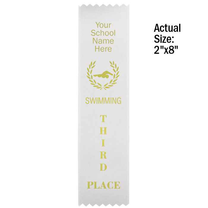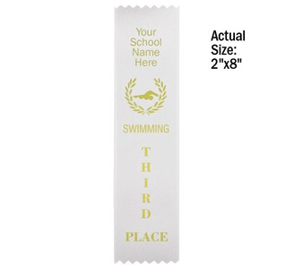 Personalize our premium stock ribbons with your school's name in gold foil. Use the standard ribbon color shown here or pick your color. Minimum order without $20.00 setup charge is 100. Ships within 5 business days. Quantity discount applies to total of Personalized Ribbons. Ribbons are 2" x 8".