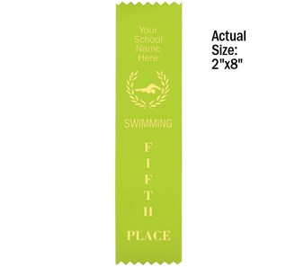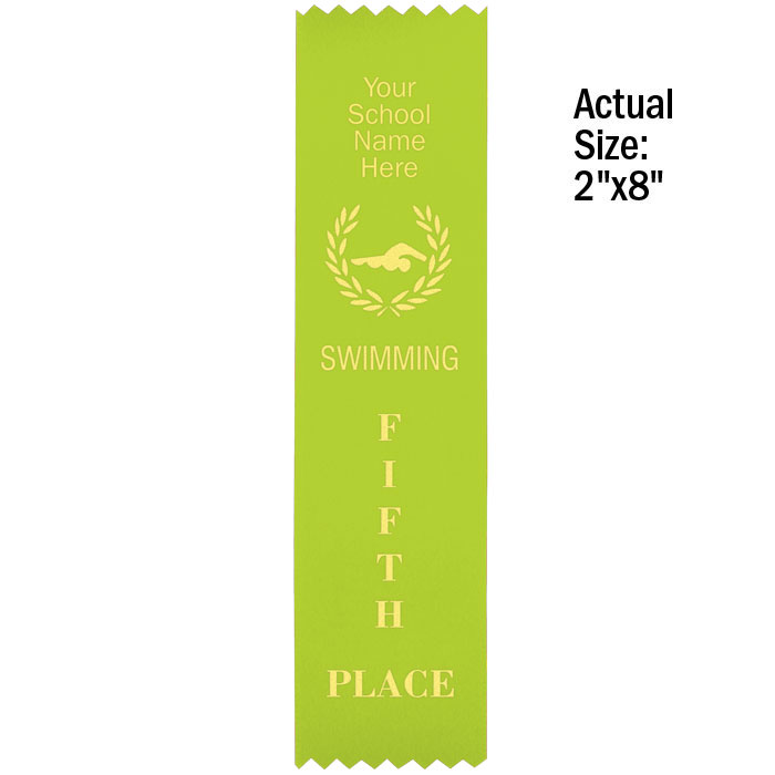 Personalize our premium stock ribbons with your school's name in gold foil. Use the standard ribbon color shown here or pick your color. Minimum order without $20.00 setup charge is 100. Ships within 5 business days. Quantity discount applies to total of Personalized Ribbons. Ribbons are 2" x 8".