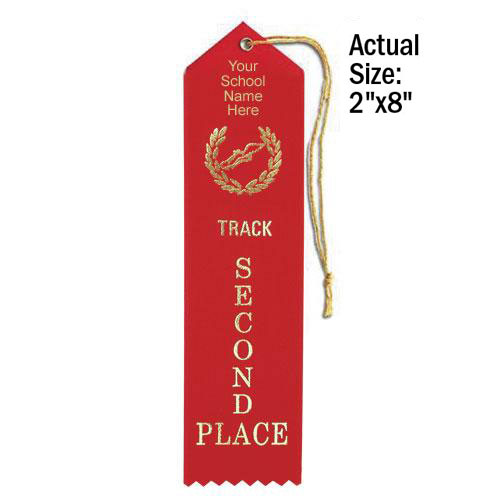 Personalize our premium stock ribbons with your school's name in gold foil. Use the standard ribbon color shown here or pick your color. Minimum order without $20.00 setup charge is 100. Ships within 5 business days. Quantity discount applies to total of Personalized Ribbons. Ribbons are 2" x 8".