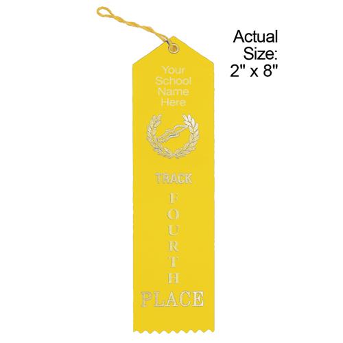 Personalize our premium stock ribbons with your school's name in gold foil. Use the standard ribbon color shown here or pick your color. Minimum order without $20.00 setup charge is 100. Ships within 5 business days. Quantity discount applies to total of Personalized Ribbons. Ribbons are 2" x 8".