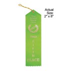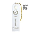 Personalize our premium stock ribbons with your school's name in gold foil. Use the standard ribbon color shown here or pick your color. Minimum order without $20.00 setup charge is 100. Ships within 5 business days. Quantity discount applies to total of Personalized Ribbons. Ribbons are 2" x 8".