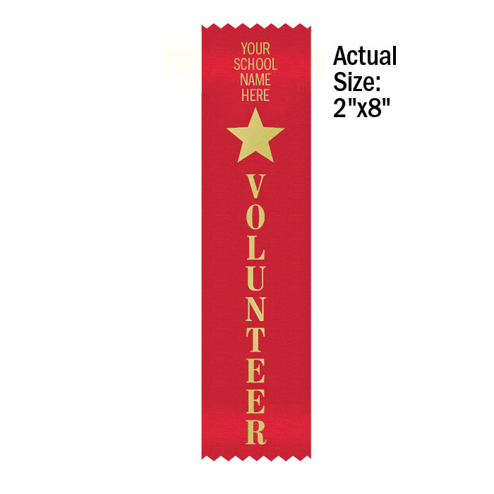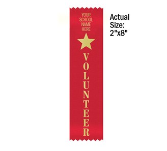 Personalize our premium stock ribbons with your school's name in gold foil. Use the standard ribbon color shown here or pick your color. Minimum order without $20.00 setup charge is 100. Ships within 5 business days. Quantity discount applies to total of Personalized Ribbons. Ribbons are 2" x 8".