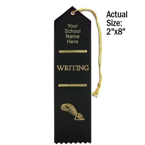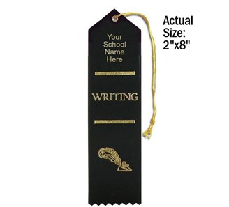 Personalize our premium stock ribbons with your school's name in gold foil. Use the standard ribbon color shown here or pick your color. Minimum order without $25.00 setup charge is 100. Ships within 5 business days. Quantity discount applies to total of Personalized Ribbons. Ribbons are 2" x 8".