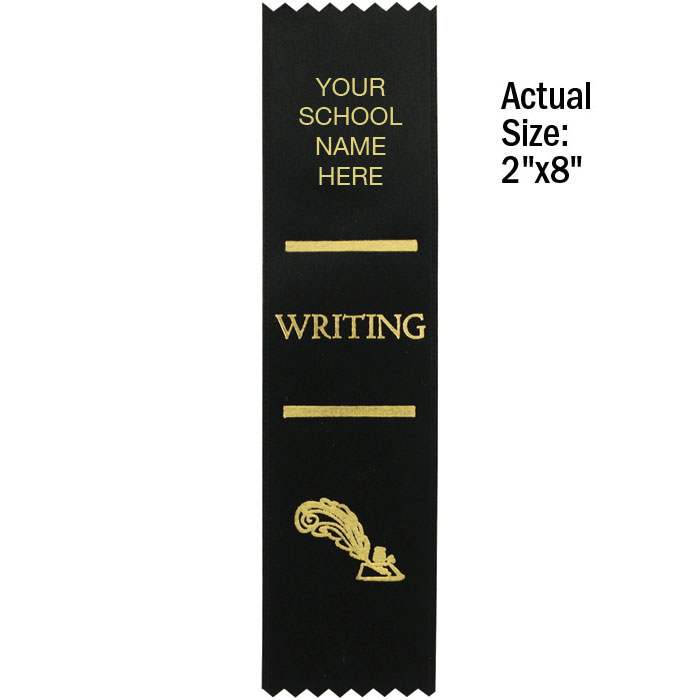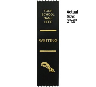 Personalize our premium stock ribbons with your school's name in gold foil. Use the standard ribbon color shown here or pick your color. Minimum order without $20.00 setup charge is 100. Ships within 5 business days. Quantity discount applies to total of Personalized Ribbons. Ribbons are 2" x 8".