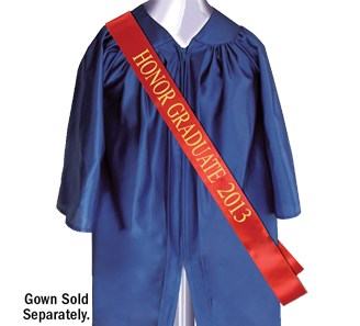 Complete your graduation program with satin sashes! These 3" x 72" premium satin sashes include 20 foil stamped characters applied to the front of the sash. For an additional charge we can stamp an additional side or add a logo. Production time is 5 days. Allow additional time for shipping. Foil Colors: Gold, Silver, Brown, Blue, Red, Green, and Black. Sash pins not included.