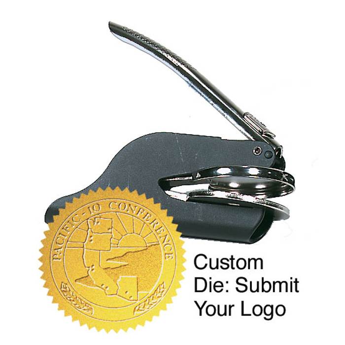 Create your own design for your embosser. This option allows you to add custom artwork or wording. We will generate custom dies for you to emboss seals, stationery, official documents, or the fly leaves of books. Best when used with 2" seals. (sold separately) Imprint area is 1 5/8" - for best imprint limit detail and lettering. Email or upload your artwork with your order number. Includes die plate. Shipped within 7 days.