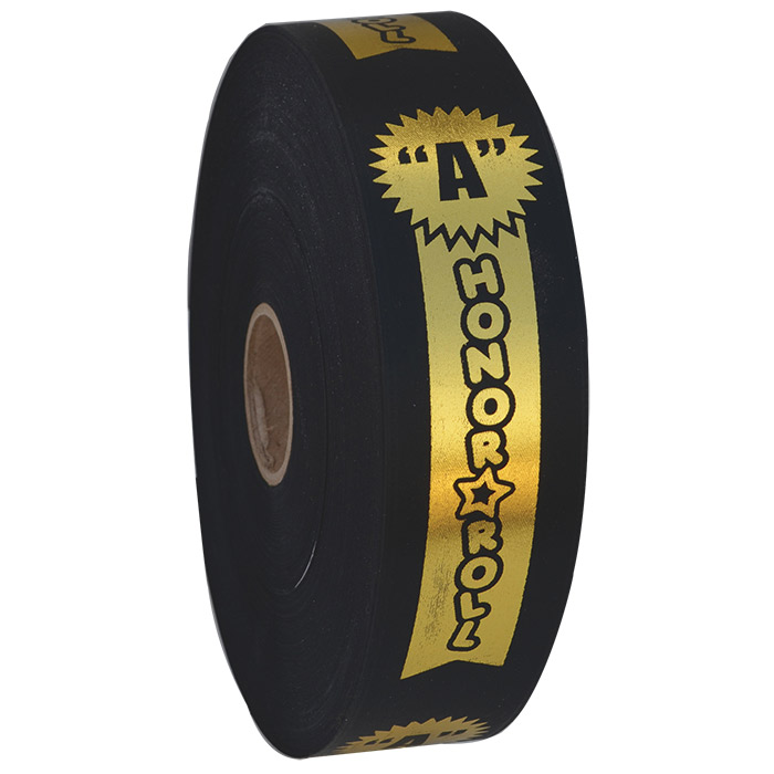 Our Honor Roll ribbons are on-a-roll. We took several of our popular titles and left them on the roll, uncut. This makes it easy to store and keep your ribbons in perfect condition until you need them. Made from premium satin with rich gold foil imprint. Each roll yields approximately 600 1.625" x 6" ribbons when cut. This item ships within 24 hours of receipt of order.
