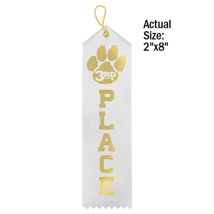 Premium Satin Paw Award Ribbons are perfect for so many occasions! These 2” x 8” ribbons are made from quality satin in vivid colors and stamped with gold foil. Plus, they are available in your choice of a flat design or our carded design with the pointed top, card and string. Same style ribbons may be combined for quantity discounts. Shipped within 24 hours.