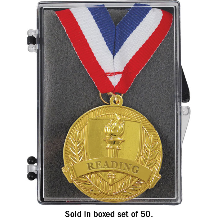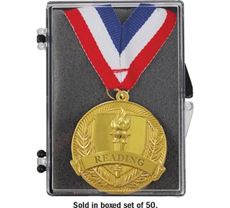 All you have to do is hand them out! Easy! We specially packaged these sets of medals for that busy award program. Each medal is attached to a red, white and blue neck ribbon and elegantly displayed in a padded acrylic presentation box. Choose one of our six preselected titles from our popular shining achievement medal lines and we'll ship your set of 50 boxed medals in just 24 hours.